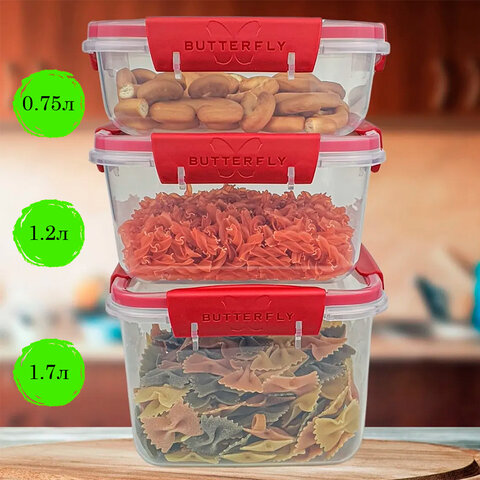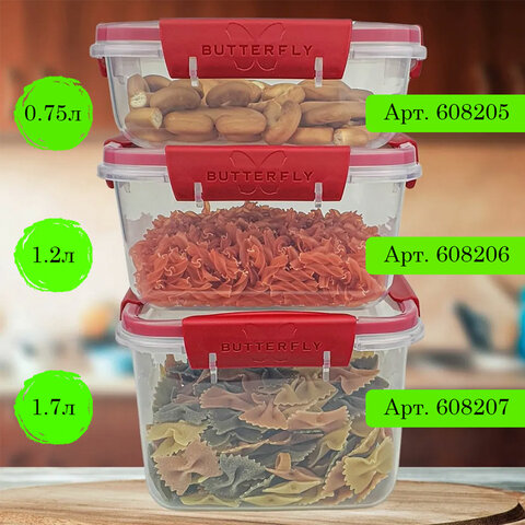 Контейнер BUTTERFLY 100% герметичен, не отдает и не впитывает запахи. Продукты и вкусовые характеристики сохраняются значительно дольше. Уплотнитель впаивается в крышку без зазоров, что не позволяет развиваться грибку.