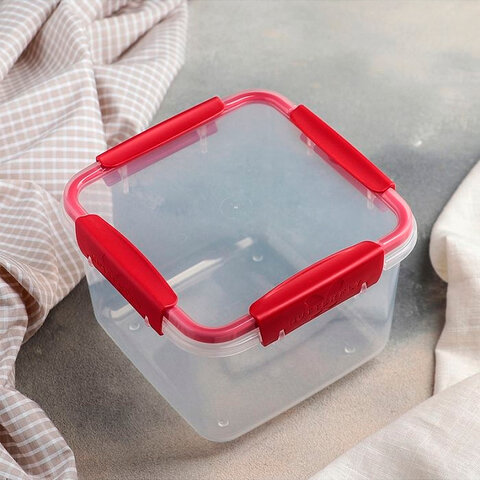 Контейнер пищевой 1,4 л КОМПЛЕКТ 3 шт., ланч бокс, КАСКАД КВАДРО, 11х18х18 см, прозрачный/красный, 68001, 436800165