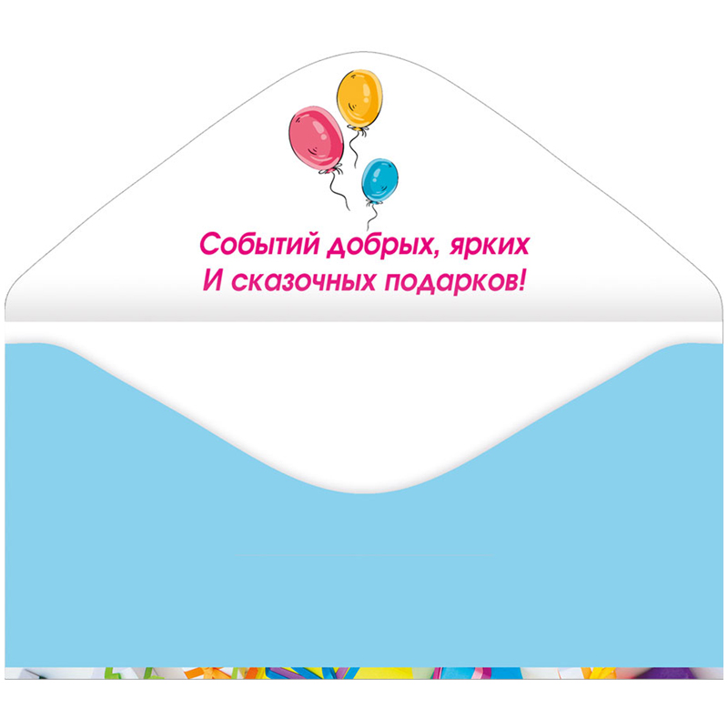 Конверт для денег с надписью на лицевой стороне "С Днем Рождения!" и поздравлением на внутренней стороне конверта. Фасовка по 10 шт. Размер изделия: 84*168 мм.