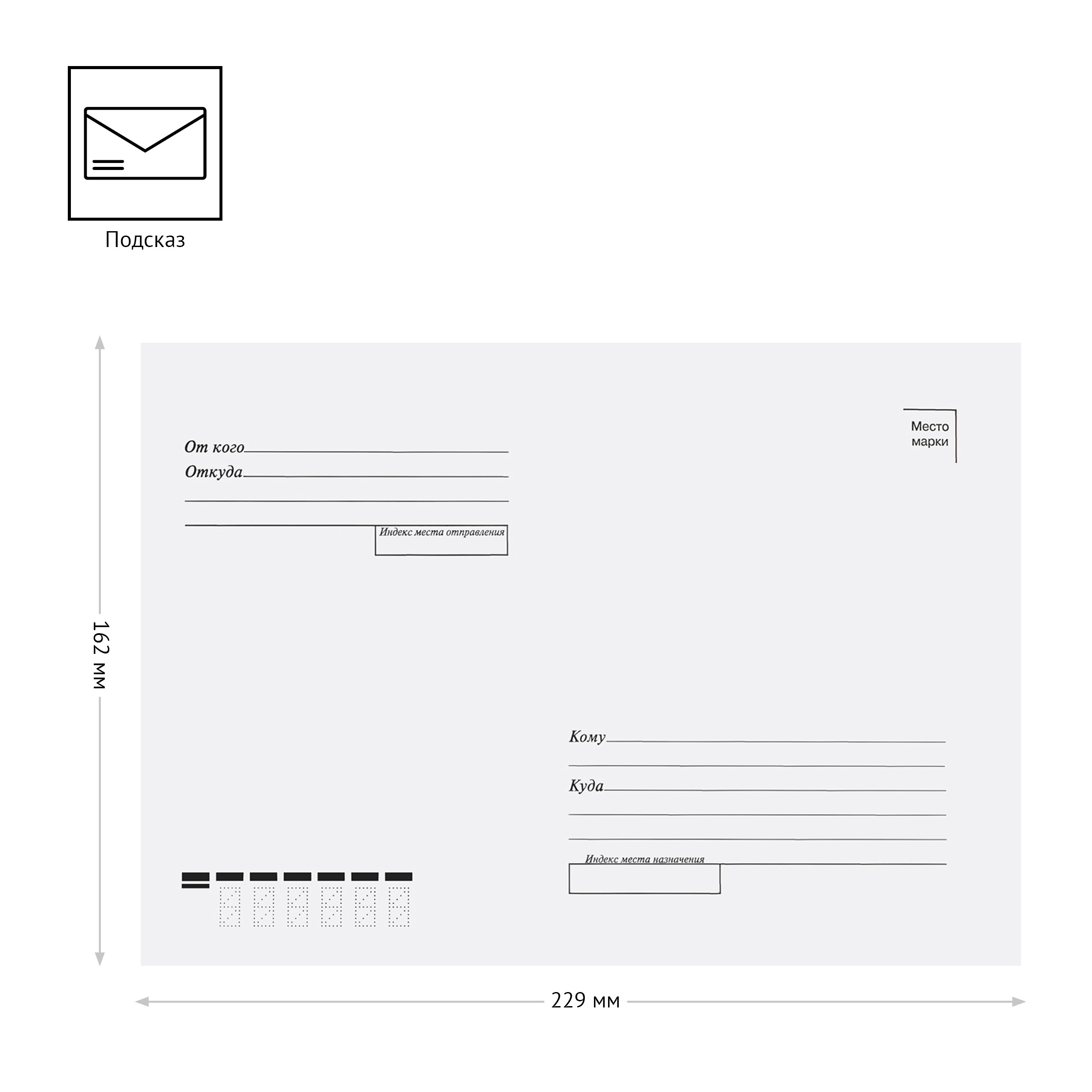 Конверты OfficeSpace формата С5 имеют широкую сферу применения. Они используются для отправки писем и документов по почте, передачи файлов через курьеров и службы доставки. Их преимущества в доступной цене и практичности. Конверт изготовлен из качественной офсетной бумаги белого цвета плотностью 80 г/м². На лицевой стороне имеются графы для заполнения. В левом верхнем углу «От кого», «Откуда», в правом нижнем углу «Кому», «Куда», а также блок для написания почтового индекса. Для надежного запечатывания в верхней части конверта располагается закрывающий клапан с нанесением клеевой силиконовой полосы типа стрип, защищенной специальной отрывной лентой.
