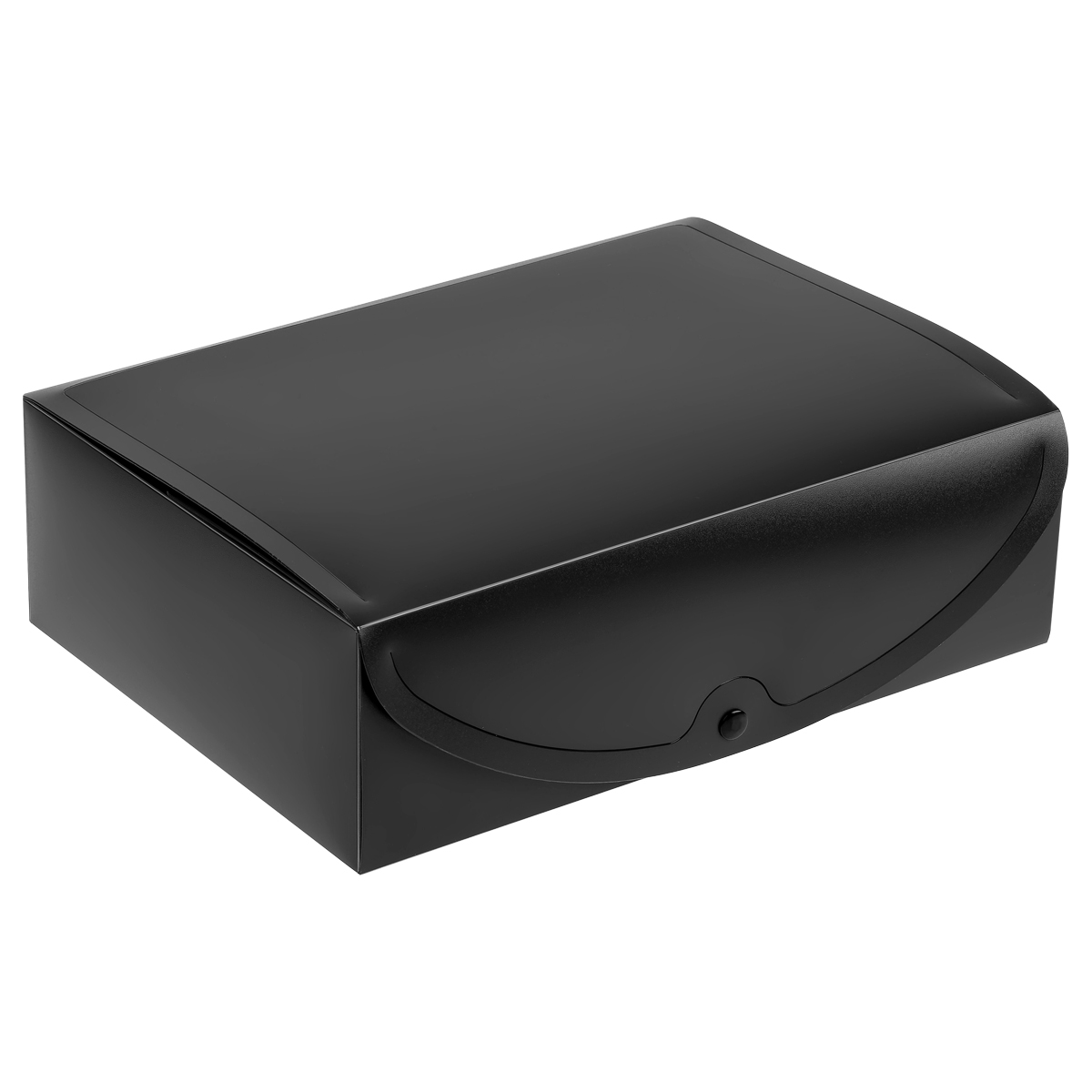 Разборный архивный короб OfficeSpace предназначен для краткосрочного хранения документов и бумаг формата А4. Имеется наварной карман со сменным информационным ярлыком для маркировки. Короб закрывается на кнопку. На корешке предусмотрено кольцо для удобства захвата. Ширина — 100 мм. Короб изготовлен из полипропилена чёрного цвета толщиной 0,9 мм. <br/>• Материал: пластик;<br/>• Цвет: чёрный;