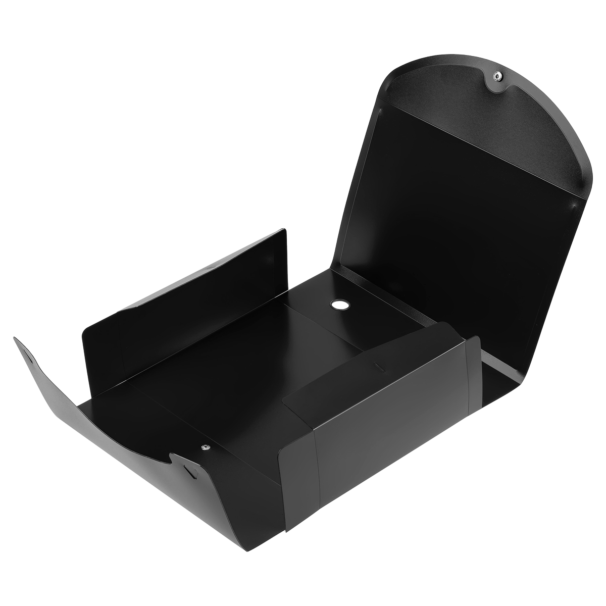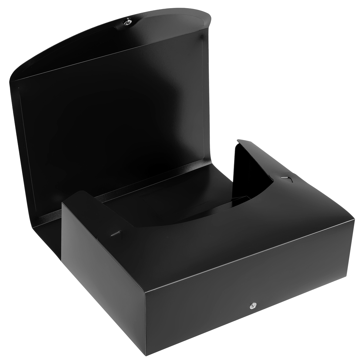 Разборный архивный короб OfficeSpace предназначен для краткосрочного хранения документов и бумаг формата А4. Имеется наварной карман со сменным информационным ярлыком для маркировки. Короб закрывается на кнопку. На корешке предусмотрено кольцо для удобства захвата. Ширина — 100 мм. Короб изготовлен из полипропилена чёрного цвета толщиной 0,9 мм.