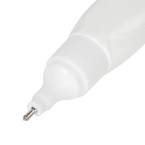 Быстросохнущая корректирующая ручка на спиртовой основе имеет объем 8 мл и обладает устойчивостью к морозу. Корректор оснащен клапанным механизмом, и подача жидкости осуществляется с помощью нажатия на наконечник ручки. Самопроизвольно жидкость не вытекает из ручки. Не оказывайте на корпус ручки повышенное физическое давление, за исключением случаев, когда ручкой давно не пользовались. Перед началом использования ОБЯЗАТЕЛЬНО встряхните ручку.