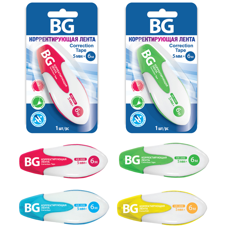 Корректирующая лента BG предназначена для мгновенного исправления строчного текста на любом типе бумаги. Наносится равномерным слоем. Не требует времени на высыхание, можно сразу писать по исправленному тексту. Общая длина корректирующей ленты — 6 м, ширина — 5 мм. Эргономичный пластиковый корпус с автоматическим подкручиванием. Съемный колпачок защищает от высыхания рабочий узел.