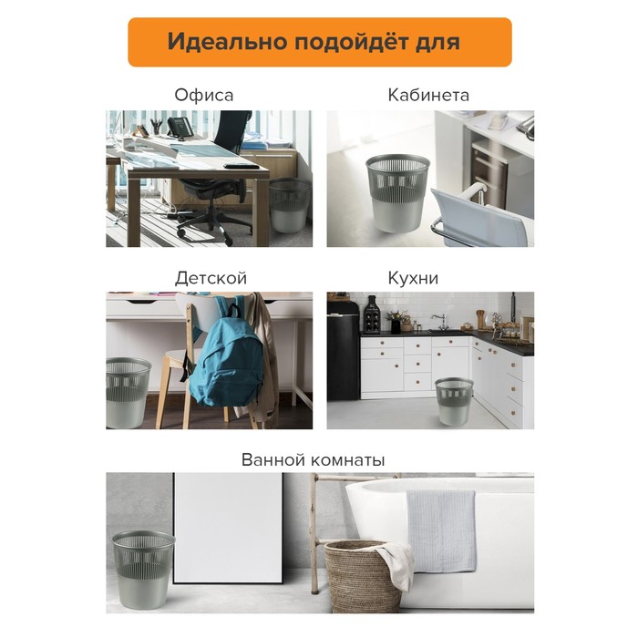 Корзина для бумаг и мусора 9 литров, СТАММ, сетчатая, белая