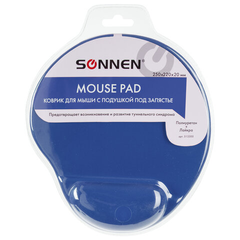Коврик для мыши SONNEN с подушкой под запястье прекрасно подойдет для тех пользователей, которые продолжительное время работают с персональным компьютером и часами не выпускают мышь из рук.
