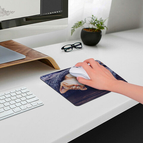 Прорезиненное основание надежно фиксирует аксессуар на столе. Благодаря компактным размерам этот привлекательный в плане дизайна коврик для мыши удобно переносить в компьютерной сумке.