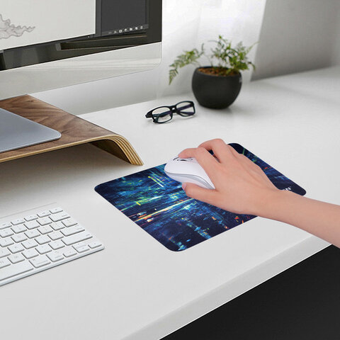 Прорезиненное основание надежно фиксирует аксессуар на столе. Благодаря компактным размерам этот привлекательный в плане дизайна коврик для мыши удобно переносить в компьютерной сумке.