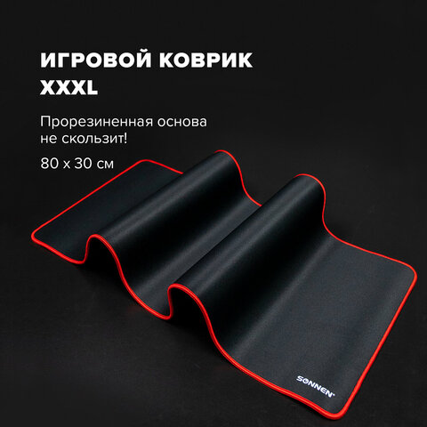 Коврик для мыши и клавиатуры большой SONNEN "BLACK TITAN XXL" 900х400х3мм, черный, 513959