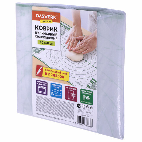 Силиконовый коврик DASWERK - это многофункциональная кухонная принадлежность, необходимая каждой хозяйке. Коврик облегчает процесс приготовления и помогает сохранить чистоту и порядок на кухне.