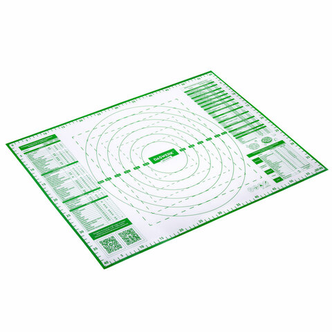 В первую очередь коврик силиконовый предназначен для замешивания и раскатки теста, но готовить на нём можно любые блюда. Изготовленный из безопасного пищевого силикона коврик размером 40х60 см не скользит по столу, а тесто любой консистенции к коврику не прилипает. Для удобства на силиконовый коврик для теста нанесена вспомогательная разметка и полезная кулинарная информация. Также набор включает пластиковый нож для теста (24 см).