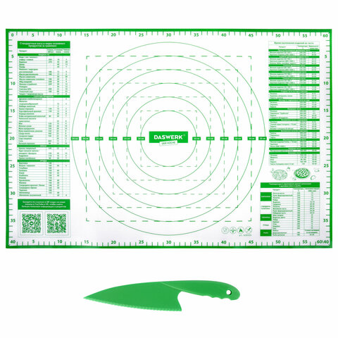 Коврик силиконовый для раскатки/запекания 46х66 см, зеленый, ПОДАРОК пластиковый нож, DASWERK, 608428