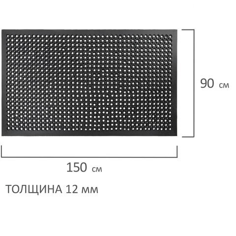 Толщина коврика равна 12 мм. Размер - 90х150 см. Цвет - черный.