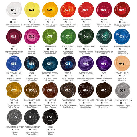 Краски в тубах объемом 12 мл поставляются в картонной коробке.