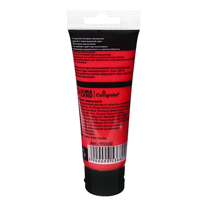 Краска акриловая матовая в тубе 75мл CALLIGRATA, КМ037, Карминово-красный, пантон 1935С