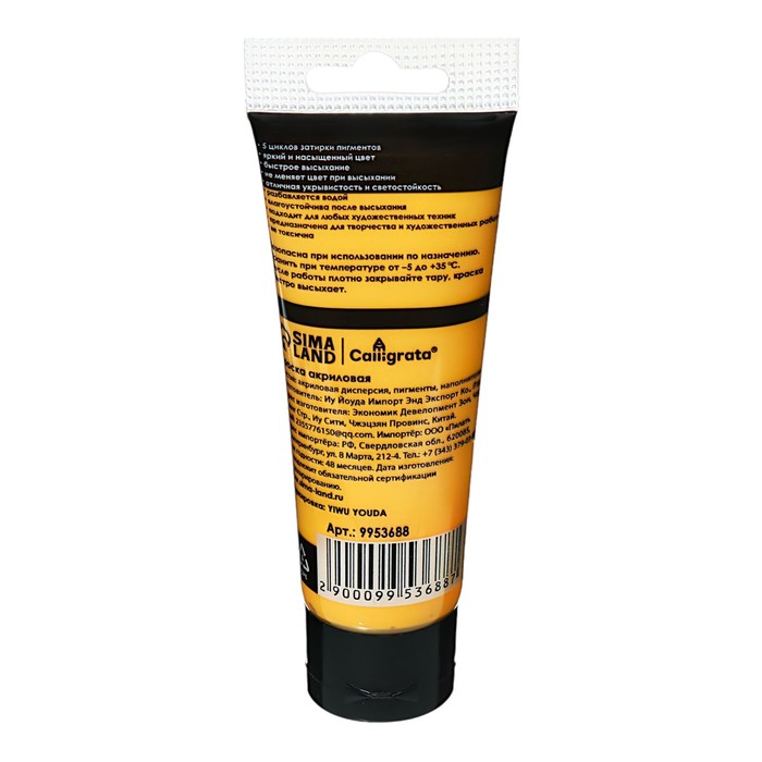 Краска акриловая матовая в тубе 75мл CALLIGRATA, КМ044, Индийский желтый, пантон 1365С