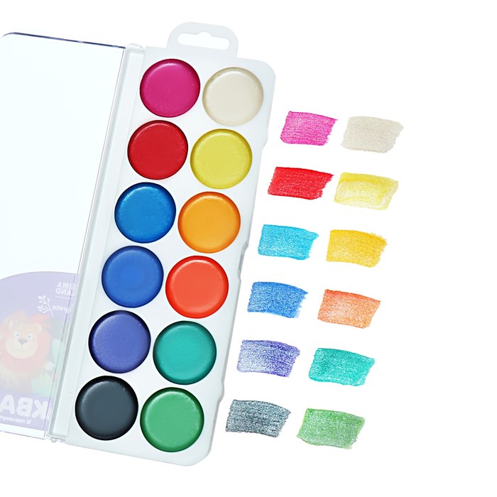 Акварель 12 цветов, упаковка картон «Буки Бяки»