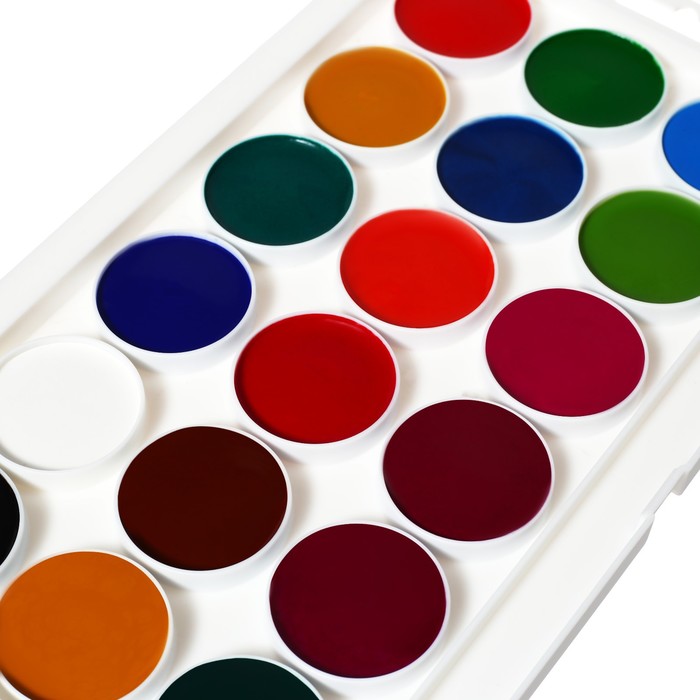 Краски акварельные 28 цветов, круглые, диаметр кюветы 28 мм, с кистью, пластиковый пенал, CALLIGRATA TOP