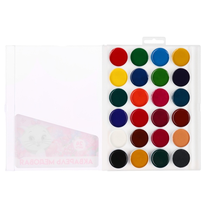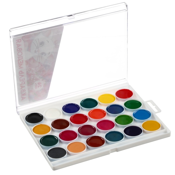 Краски акварельные 28 цветов, круглые, диаметр кюветы 28 мм, с кистью, пластиковый пенал, CALLIGRATA TOP