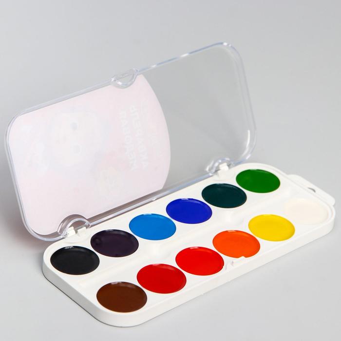 Акварель 12 цветов, упаковка картон «Буки Бяки»