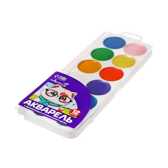 Акварель 12 цветов, упаковка картон «Буки Бяки»