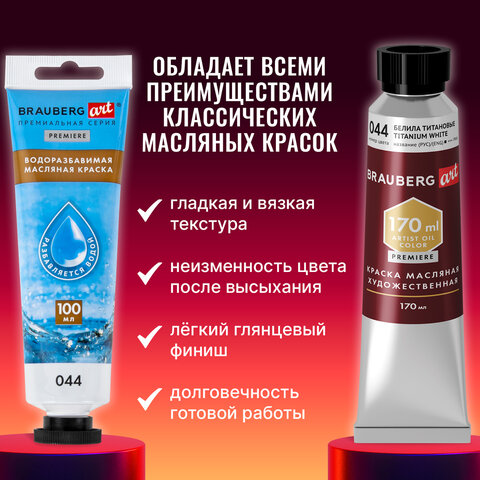 Краски масляные BRAUBERG ART PREMIERE предназначены для профессиональных художников. Водоразбавимые масляные краски - это масляная живопись без забот!