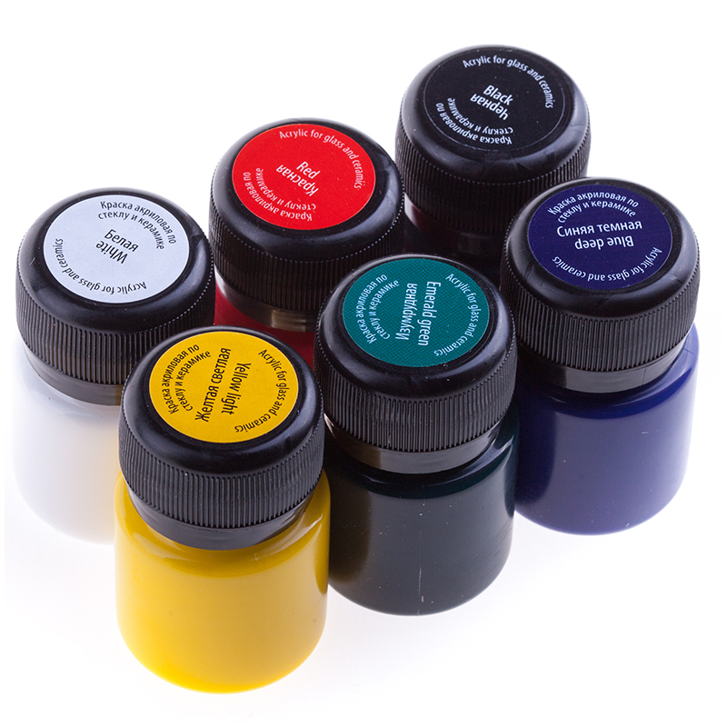 Набор художественных красок по стеклу и керамике из 6 цветов