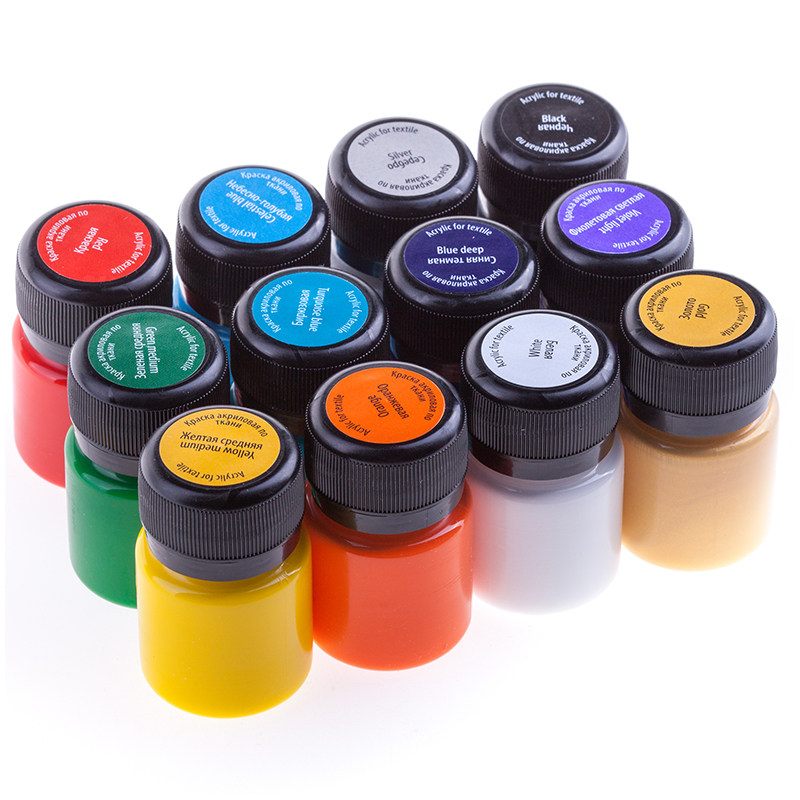 Набор акриловых красок по ткани из 12 цветов