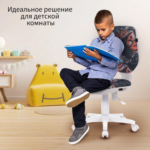 Детское кресло BRABIX "Fancy MG-201W" с сочетанием пластиковой основы белого цвета и ярким рисунком. Конструкция кресла продумана до мелочей и максимально безопасна для ребенка.