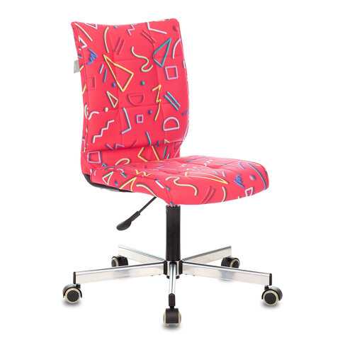 Кресло CH-330M, без подлокотников, пятилучие серебристое, ткань, красное с рисунком, 1624531