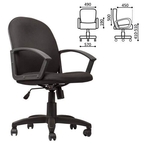 Кресло CROMEX Basic CH-698, с подлокотниками, мех. качания, сетка, черное, ткань TW, 533069