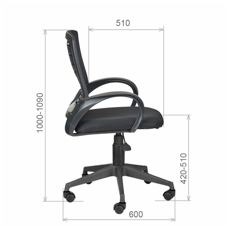 Кресло CROMEX Basic CH-698, с подлокотниками, мех. качания, сетка, черное, ткань TW, 533069
