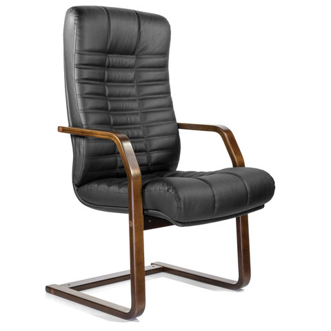 Кресло для приемных и переговорных "Атлант-экстра", кожа, дерево (орех), черное