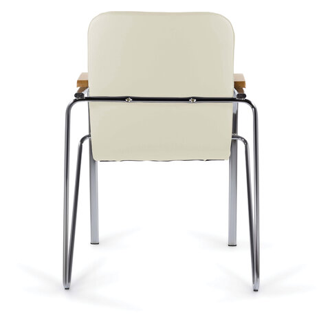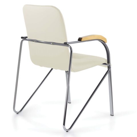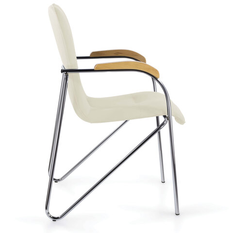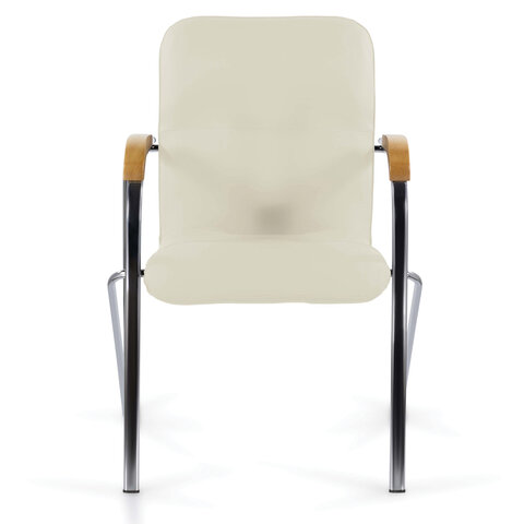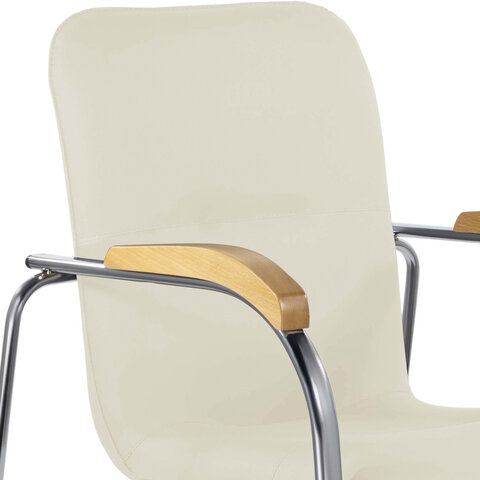 Кресло для приемных и переговорных "Samba", деревянные накладки, хромированый каркас, кожзам песоч.