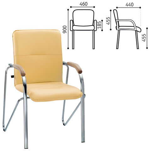 Кресло для приемных и переговорных "Samba", деревянные накладки, хромированый каркас, кожзам песоч.