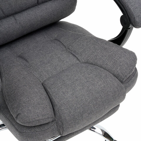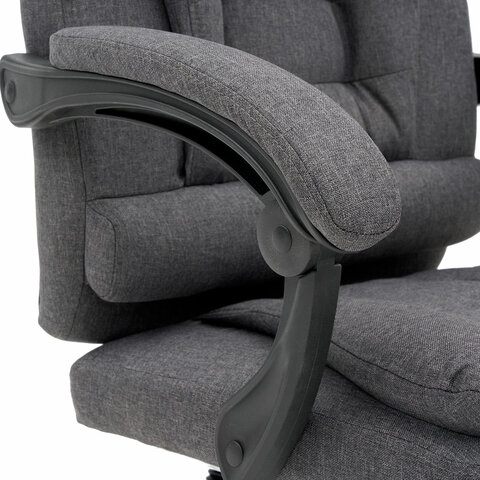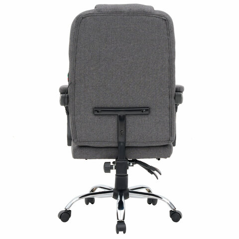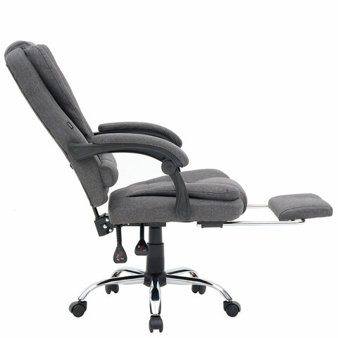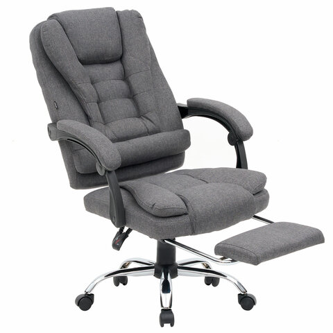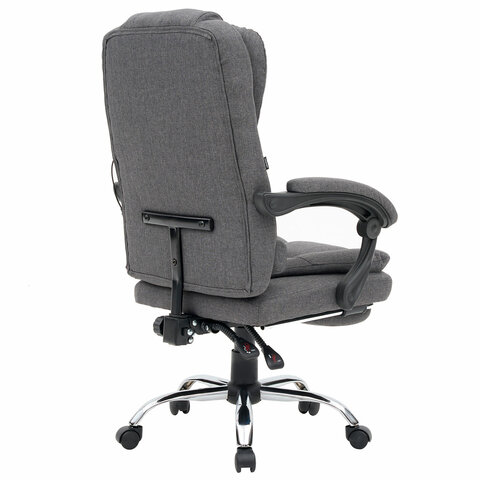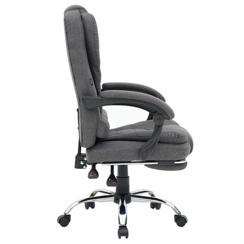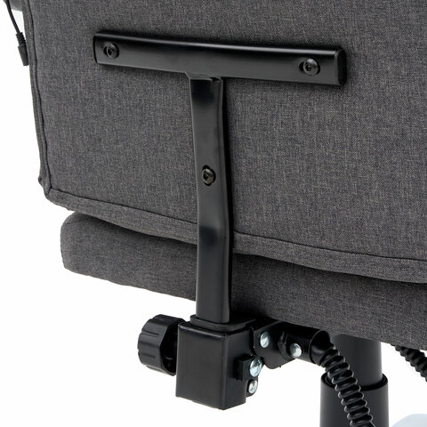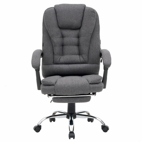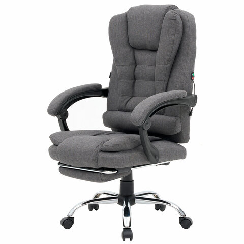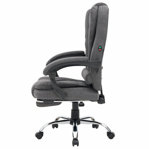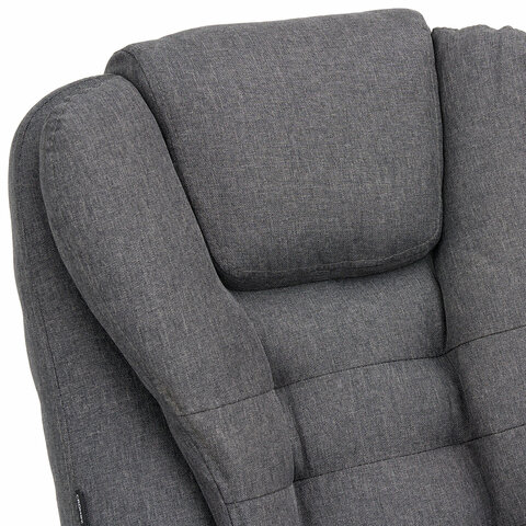 Механизм отклонения спинки позволяет настроить её угол под индивидуальные предпочтения, а подвижные подлокотники с мягкими накладками обеспечивают комфорт в течение всего рабочего дня. Два массажных модуля в области поясницы и подставка для ног добавляет удобства и позволяет расслабиться после долгой работы. Ткань приятна на ощупь и проста в уходе, а стильный дизайн впишется в любой интерьер.