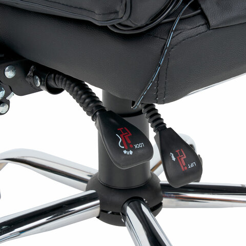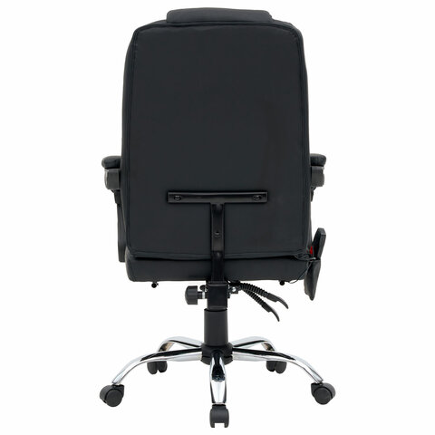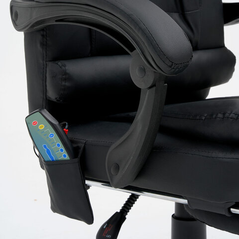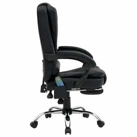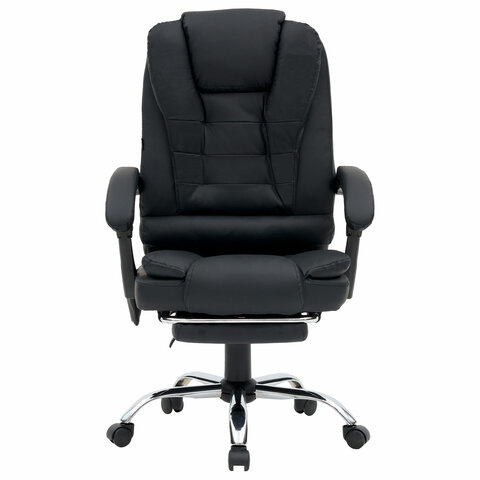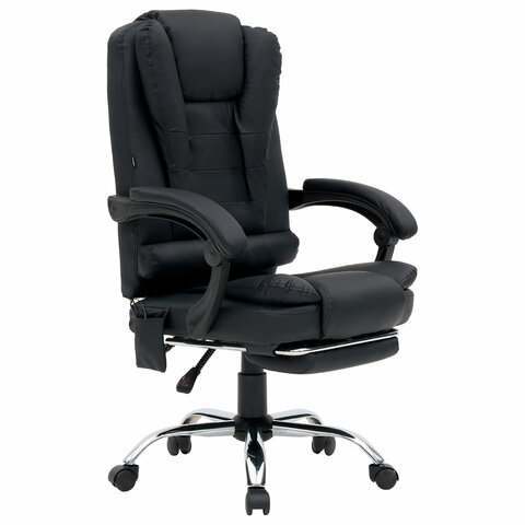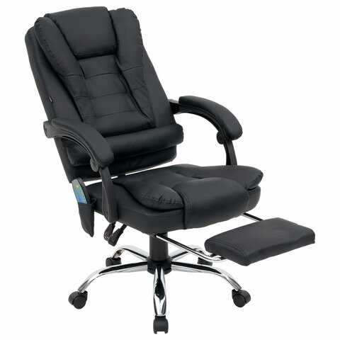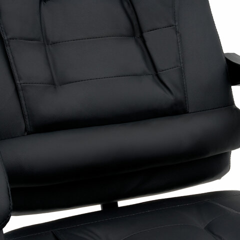 Механизм отклонения спинки позволяет настроить её угол под индивидуальные предпочтения, а подвижные подлокотники с мягкими накладками обеспечивают комфорт в течение всего рабочего дня. Четыре массажных модуля в области поясницы и два в области сиденья, также подставка для ног добавляет удобства и позволяет расслабиться после долгой работы. Экокожа приятна на ощупь и проста в уходе, а стильный дизайн впишется в любой интерьер.