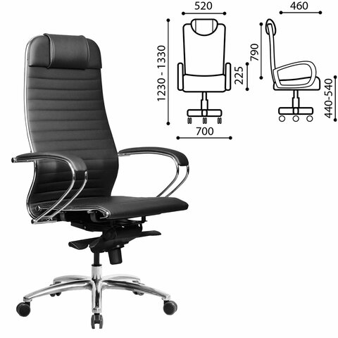 Кресло офисное МЕТТА "SAMURAI" Lux, экокожа, регулируемое сиденье, черное
