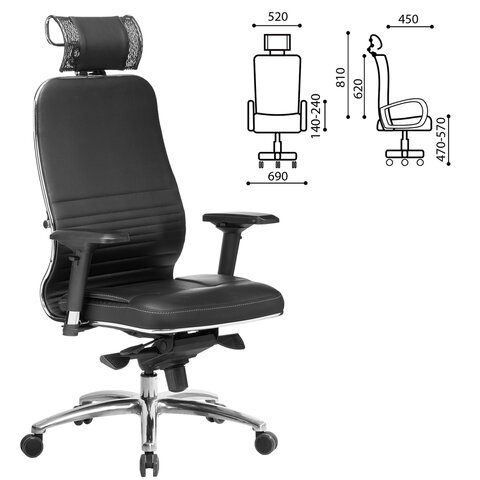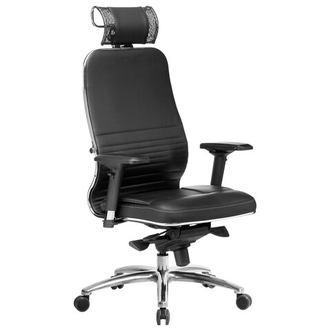 Кресло офисное МЕТТА "SAMURAI" Lux, экокожа, регулируемое сиденье, черное