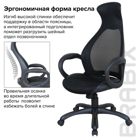 Кресло BRABIX PREMIUM "Veyron ER-703", адаптивный механизм, регулируемый подголовник, сетка/ткань, черное, 532966