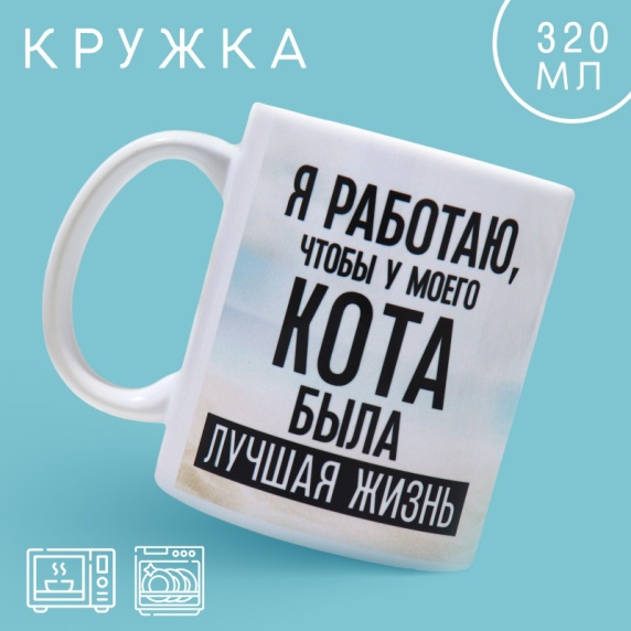 Кружка изготовлена из керамики. Рисунок нанесён методом сублимации, при котором краска проникает в верхний слой изделия. Поэтому изображение получается стойким. Эта кружка с надписью и приколом станет веселым презентом и поднимет настроение! Из нее приятно пить чай и кофе и в офисе и дома. Посуда - это всегда практичный и приятный комплимент мужчине и женщине. Ели хотите подарить кружку с принтом сестре, парню или девушке, то выбирайте веселый принт. Кружка белая керамическая объемом 320 мл упакована надежно. Отличный практичный подарок своей второй половинке! Объём: 320 мл. Можно мыть в посудомоечной машине. Можно использовать в СВЧ-печи.