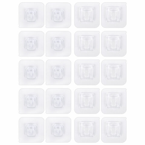 Крючки самоклеящиеся универсальные 6х6 см, КОМПЛЕКТ 20 шт., сталь + ПВХ, LAIMA Home, 608792