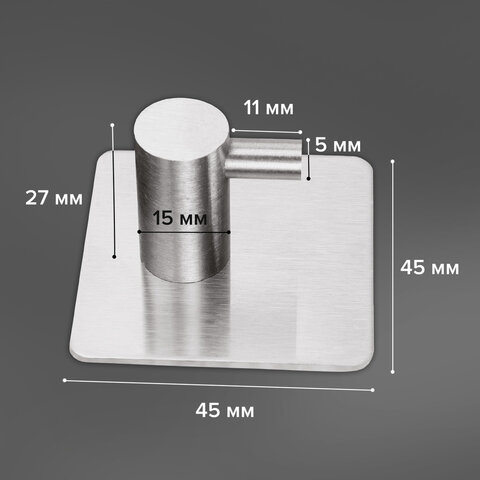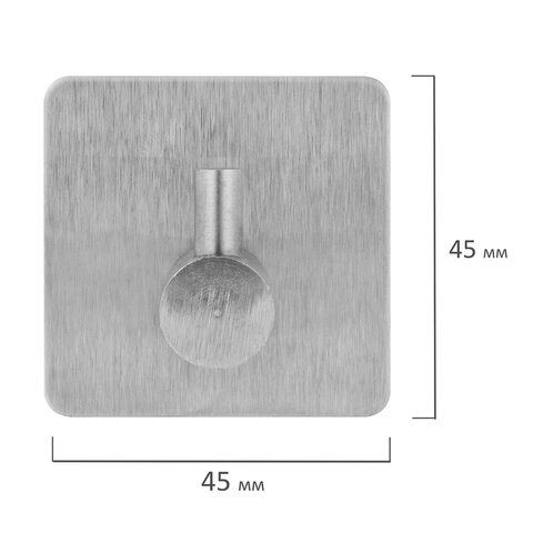 Крючки самоклеящиеся 5х5 см для ванной комнаты, кухни, КОМПЛЕКТ 2 шт., нержавеющая сталь, LAIMA Home, 608798