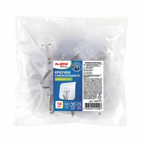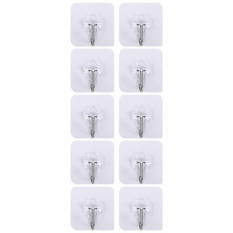 Крючки-кронштейны самоклеящиеся 6х6 см, КОМПЛЕКТ 10 шт., акриловый клей, LAIMA Home, 608794