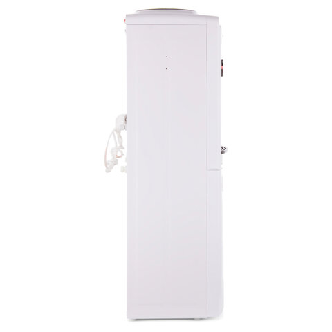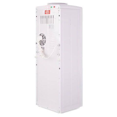 Высота устройства составляет всего 85 см, что делает его одним из самых низких среди напольных кулеров. Это позволяет устанавливать его в ограниченном пространстве без потери удобства использования. Мощность нагрева — 700 Вт, в час устройство способно нагреть не менее 7 литров воды до 90–96°C, что идеально подходит для приготовления чая или кофе. Охлаждение обеспечивает до 1 литра воды в час с температурой 12–15°C, благодаря встроенной электронной системе.