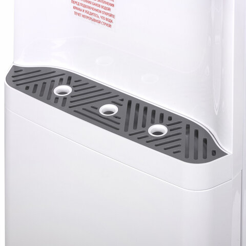 Кулер оснащен функцией "Защита от детей", которая предотвращает случайную подачу горячей воды. Чтобы налить горячую воду, необходимо, удерживая фиксатор, нажать нужную кнопку. Также кулер имеет защиту от протечек воды.