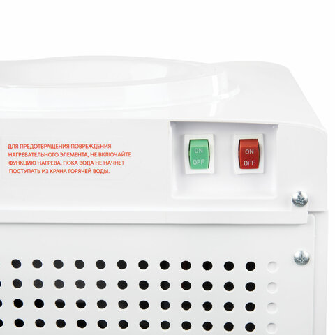 Вода нагревается с помощью ТЭНа мощностью 500 Вт, что позволяет достичь температуры 90 °С за считанные минуты. Модуль электронного охлаждения мощностью 65 Вт обеспечивает поддержание температуры холодной воды на уровне 10 °С. Кулер предназначен для напольного размещения и имеет 2 крана типа "нажим кружкой", а также защиту от протечек воды. Для использования необходимо поместить бутыль в специальное отверстие в верхней части диспенсера. Перед первым использованием необходимо слить около 1 л воды, чтобы очистить накопительный бак и трубки от скопившейся производственной пыли. Благодаря тому, что высокая температура воды в кулере поддерживается постоянно, больше не нужно будет ждать, пока он нагреется, что особенно важно для крупных компаний с большим количеством сотрудников и посетителей.