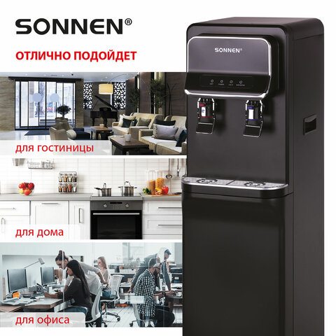 Напольный кулер SONNEN FSE-02WB – качественное устройство, которое станет идеальным решением для дома и офиса. Стильный черный корпус гармонично впишется в любой интерьер.