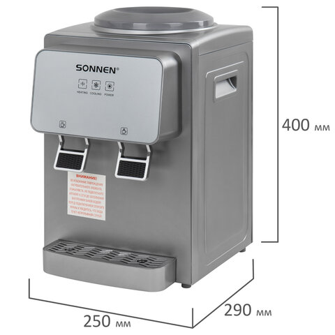 Вода нагревается с помощью ТЭНа мощностью 500 Вт, что позволяет достичь температуры 90 °С за считаные минуты. Модуль электронного охлаждения мощностью 70 Вт обеспечивает поддержание температуры холодной воды на уровне 15 °С.