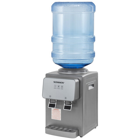 Кулер предназначен для настольного размещения и имеет 2 крана типа "нажим кружкой", а также защиту от протечек воды. Для использования необходимо поместить бутыль в специальное отверстие в верхней части диспенсера. Перед первым использованием необходимо слить около 1 л воды, чтобы очистить накопительный бак и трубки от производственной пыли.